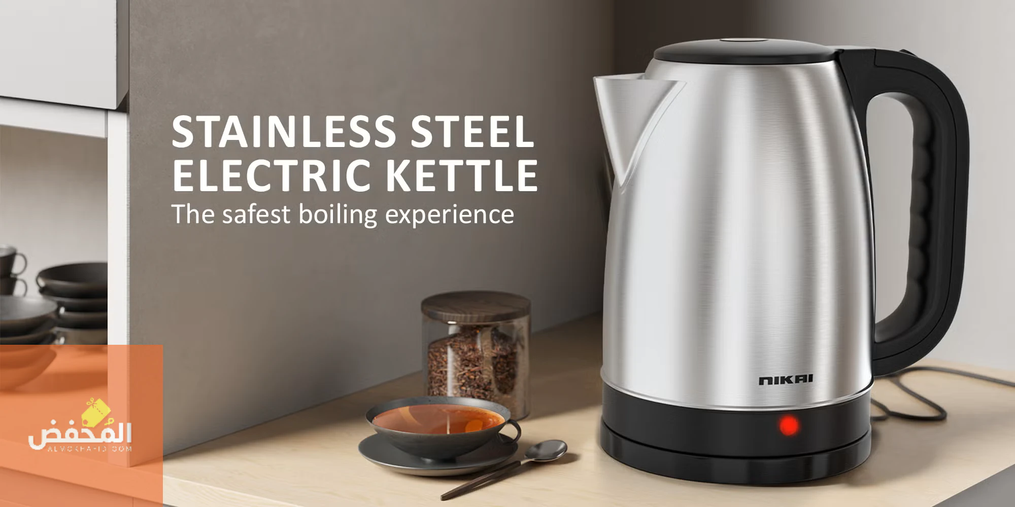 - تضمن لك غلاية ماء ستانلس ستيل نيكاي Nikai غليان الماء بسرعة بفضل قوتها الكهربائية.