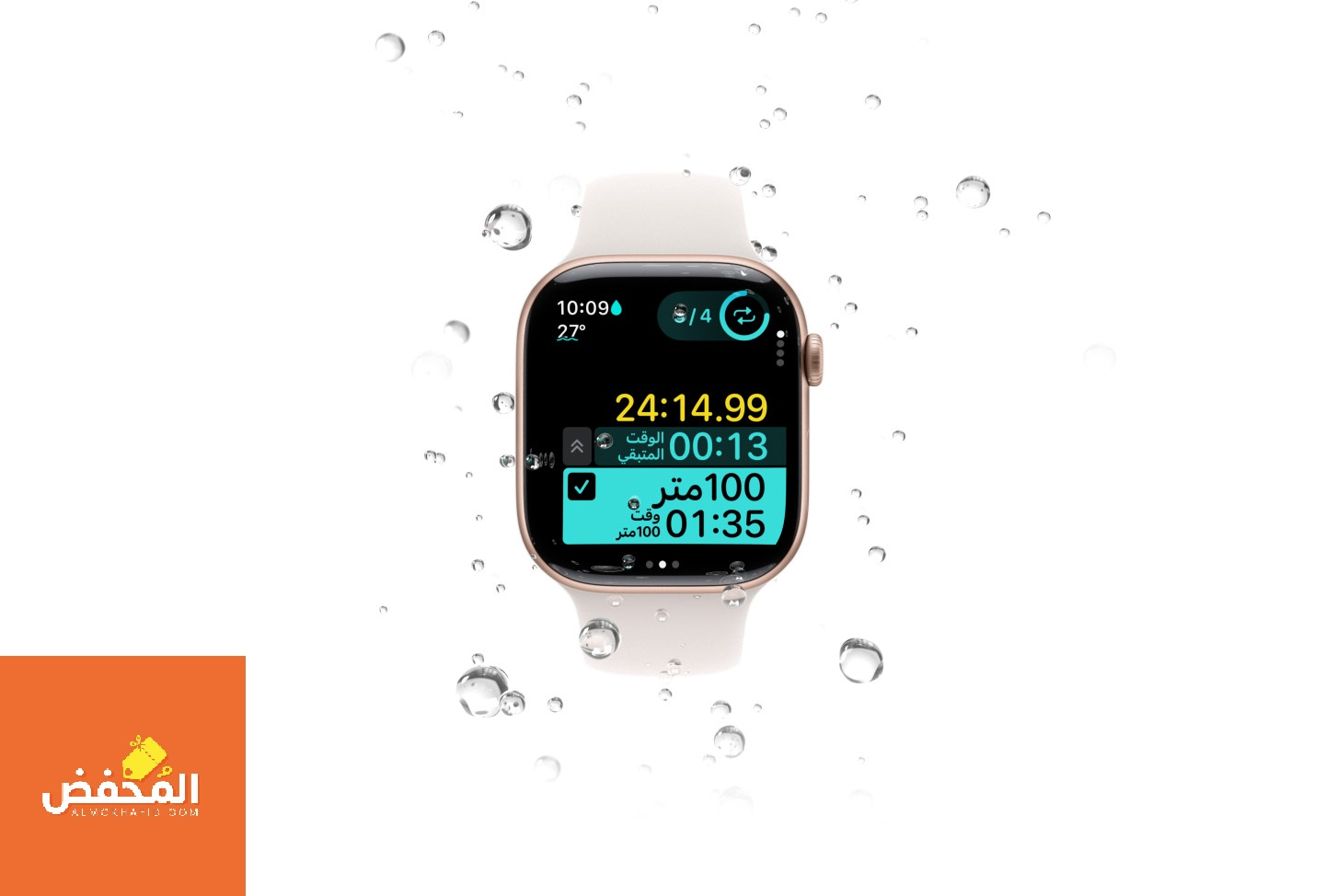 - الساعة مقاومة للماء، مما يجعلها مناسبة للسباحة.
