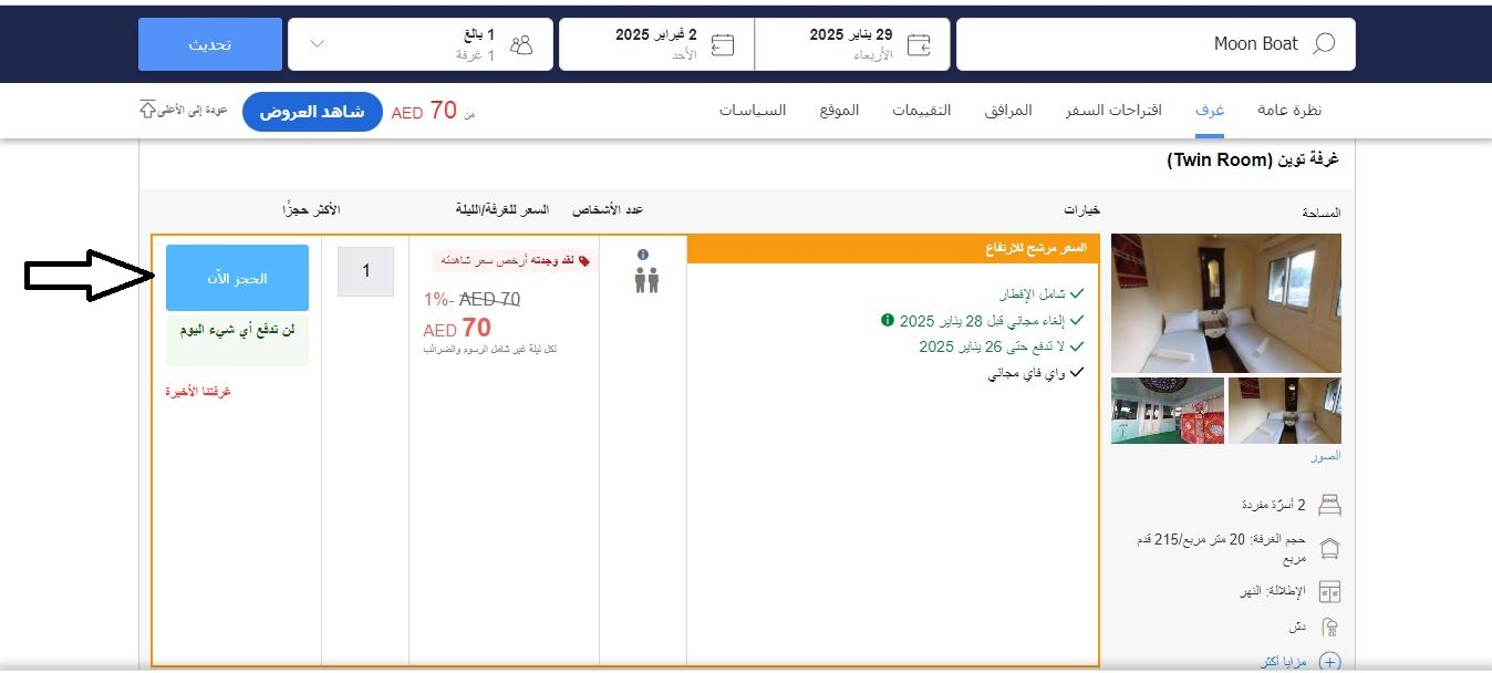 الانتقال إلى الصفحة التالية والضغط على “احجز الآن”.