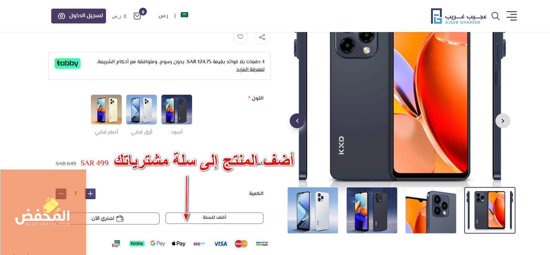 4- أضف المنتج المرغوب إلى سلة المشتريات الخاصة بك عن طريق الضغط على الأيقونة المشار إليها بالسهم التالي، وذلك حتى تتمكن من استعراض المنتج المرغوب وإتمام عملية الشراء بكل سهولة وبدون أية تعقيدات.