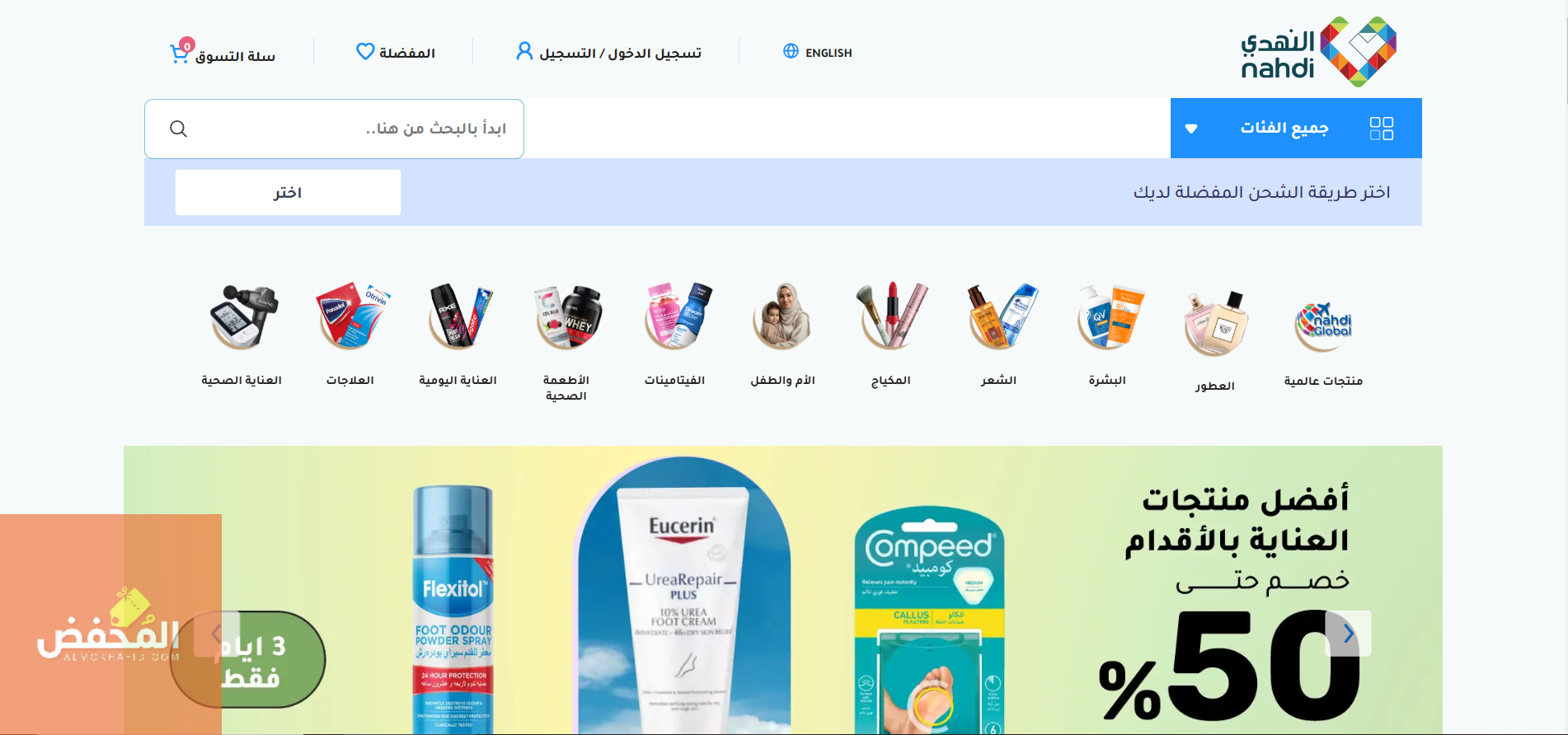 1- ادخل إلى الصفحة الرسمية لمتجر النهدي، أو قم بتحميل التطبيق الخاص بالهواتف المحمولة من المتجر الرسمي الخاص بهاتفك المحمول، إذ يمكن تطبيق الكود على كلًا من الموقع والتطبيق.