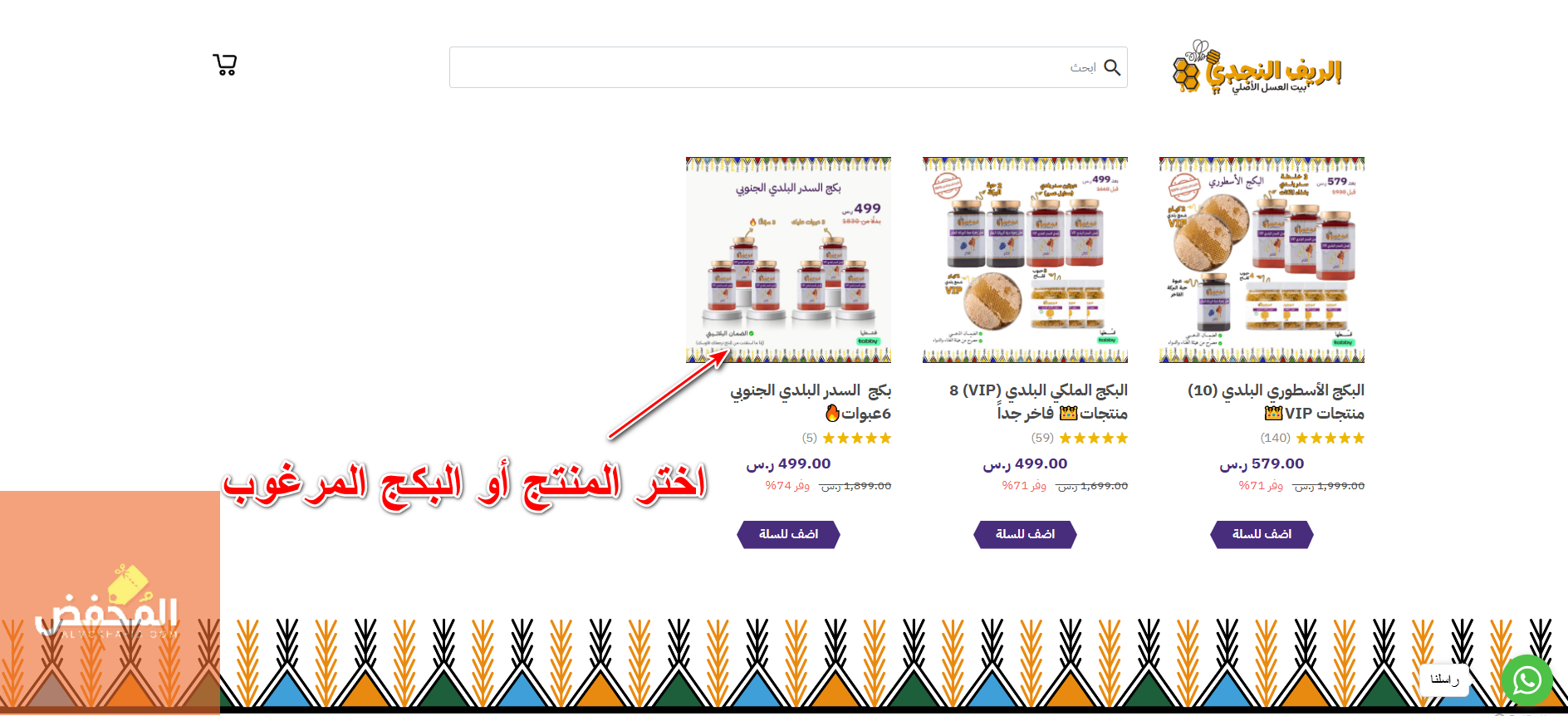 1- ادخل إلى الموقع الرسمي لمتجر الريف النجدي عن طريق الرابط المباشر المعروض أعلى هذه المقالة والذي يمكن من خلاله استعراض كافة منتجات العسل المميزة التي يوفرها المتجر، والعروض المختلفة.