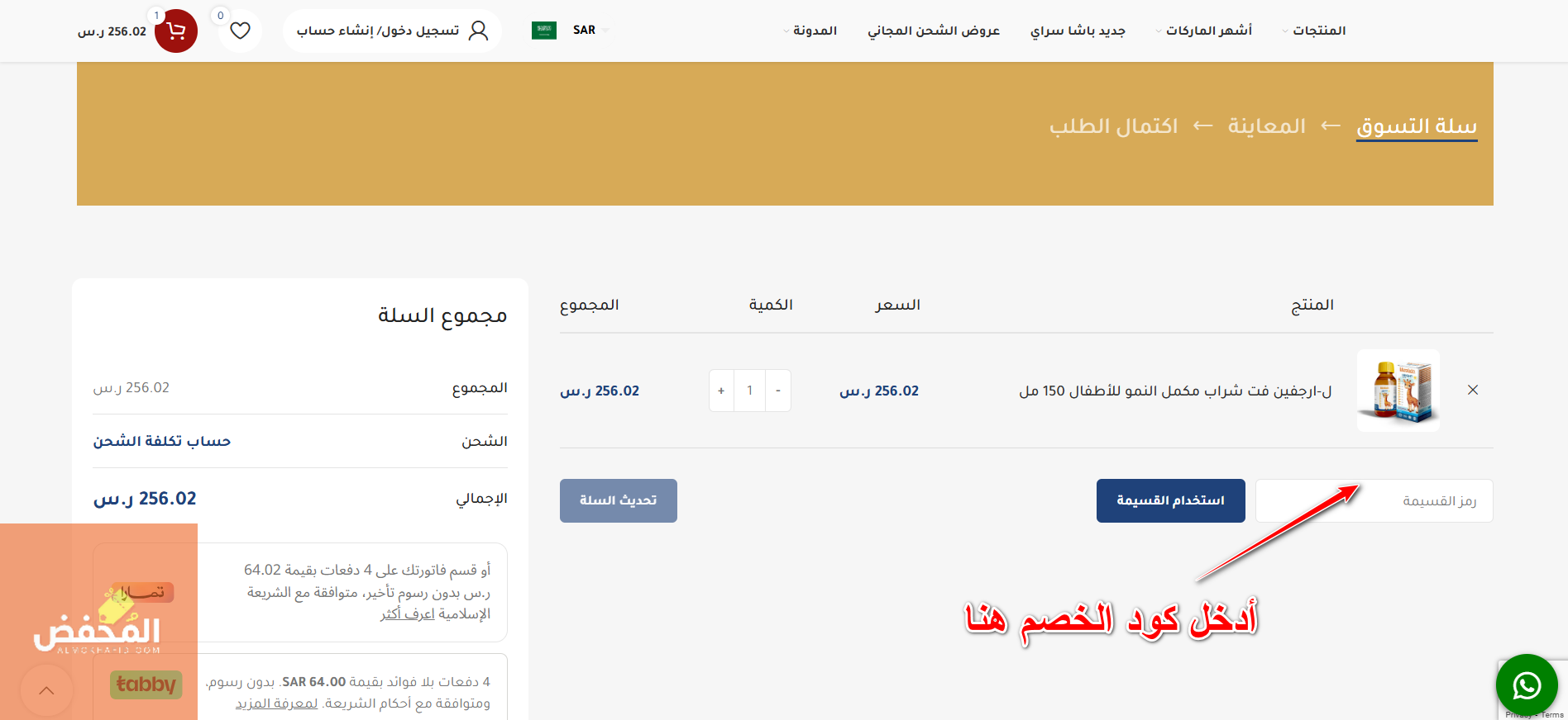 5- ادخل رمز قسيمة خصم باشا سراي الإمارات في الخانة المحددة والمشار إليها بالسهم في الصورة التالية، ثم اضغط “استخدام القسيمة” حتى تتمكن من الحصول على الخصومات التي يوفرها كود الخصم بشكل فوري بمجرد الضغط على الأيقونة.