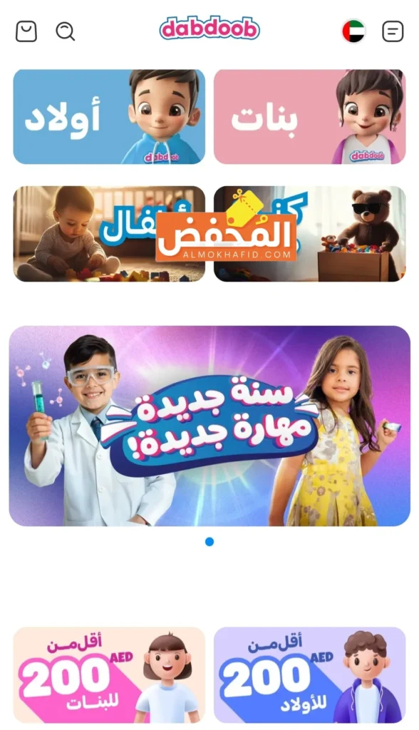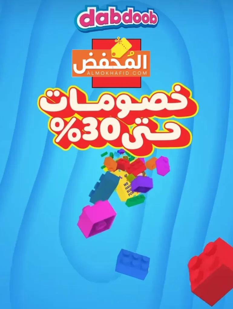يطرح متجر دبدوب العديد من الألعاب المبتكرة والتعليمية والمُسلية للبنات والأولاد، كود خصم Dabdoob يُتيحي لك شراء جميع منتجات المتجر بأسعار تبدأ من 5% وتصل حتى 65% سواء كان هذا الطلب الأول لك، أو كنت من العملاء المعتادين على الشراء من دبدوب.