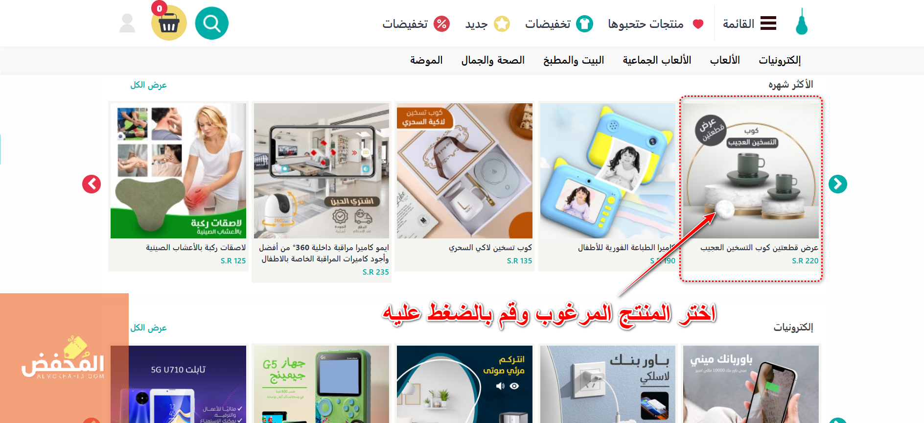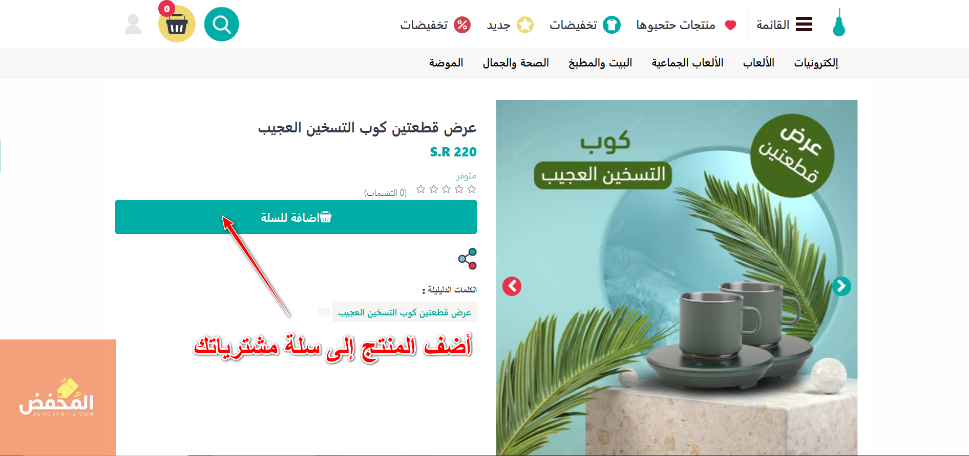 4- أضف المنتج إلى سلة المشتريات الخاصة بك عن طريق الضغط على الأيقونة المشار إليها بالسهم في الصورة التالية حتى تتمكن من إتمام طلب الشراء الخاص بك، والحصول على الخصومات المميزة التي يوفرها الكود.