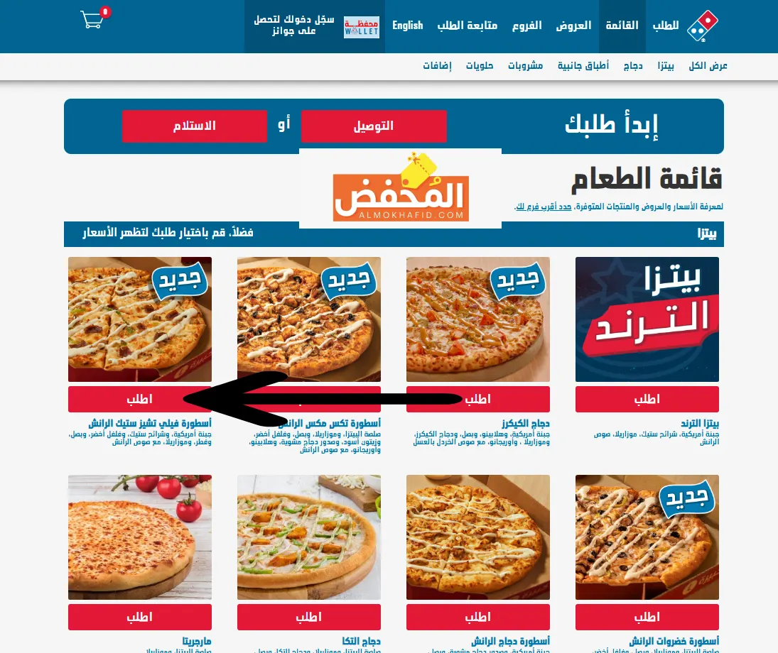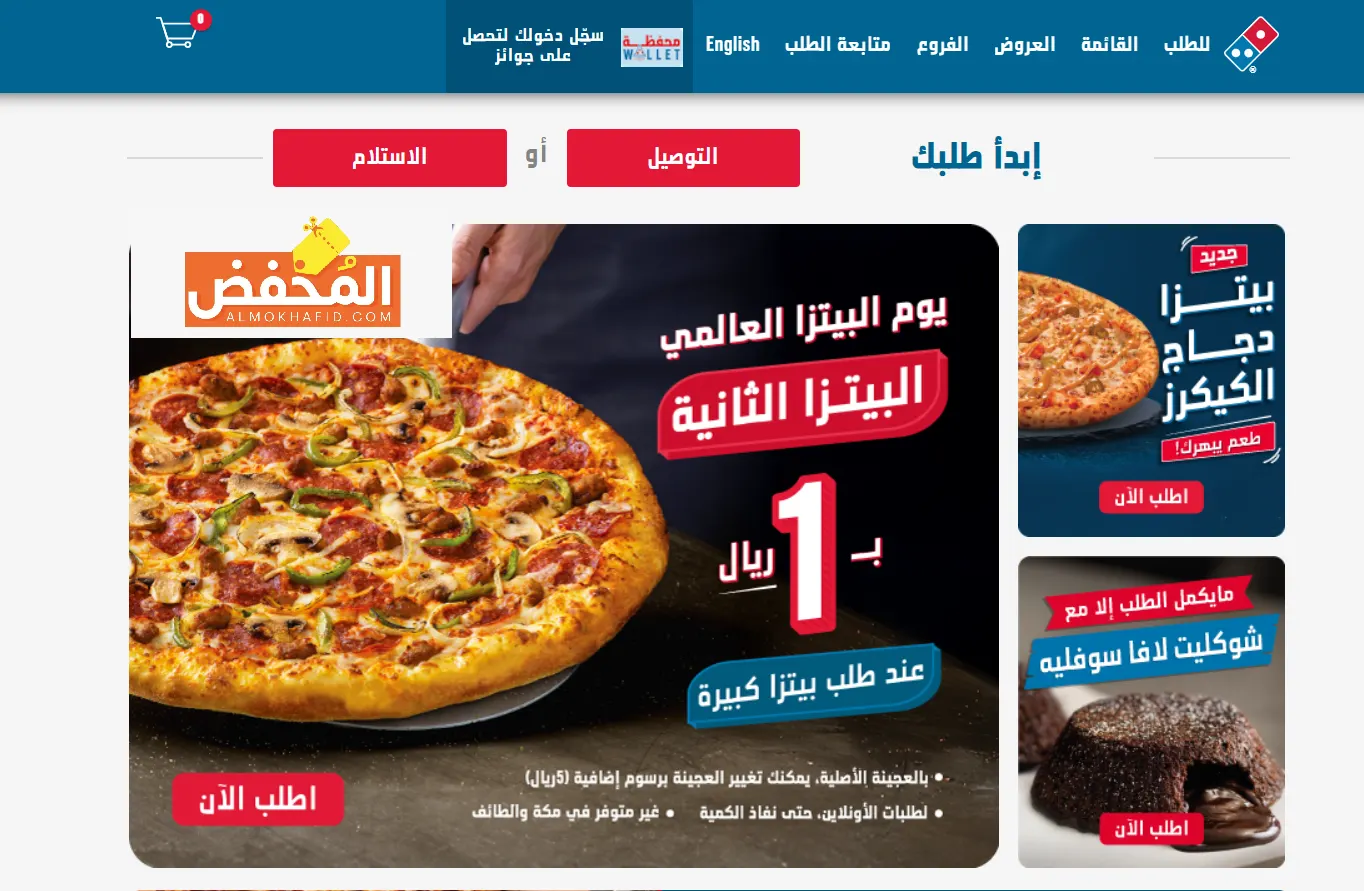 يمكنك لأن الحصول على خصومات فورية على أي من المأكولات التي تفضلها والتي يوفرها لك موقع Dominos Pizza، وذلك من خلال تفعيل كوبون الخصم بالطريقة التالية:
