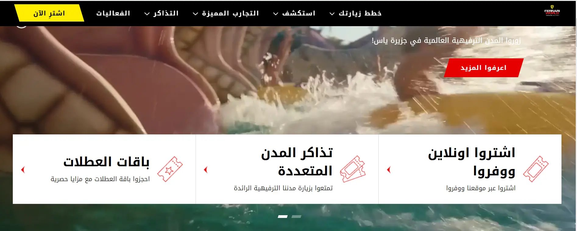 تصفح كافة الخدمات التي يوفرها عالم فيراري وحجز التذاكر للأماكن الترفيهية المختلفة.