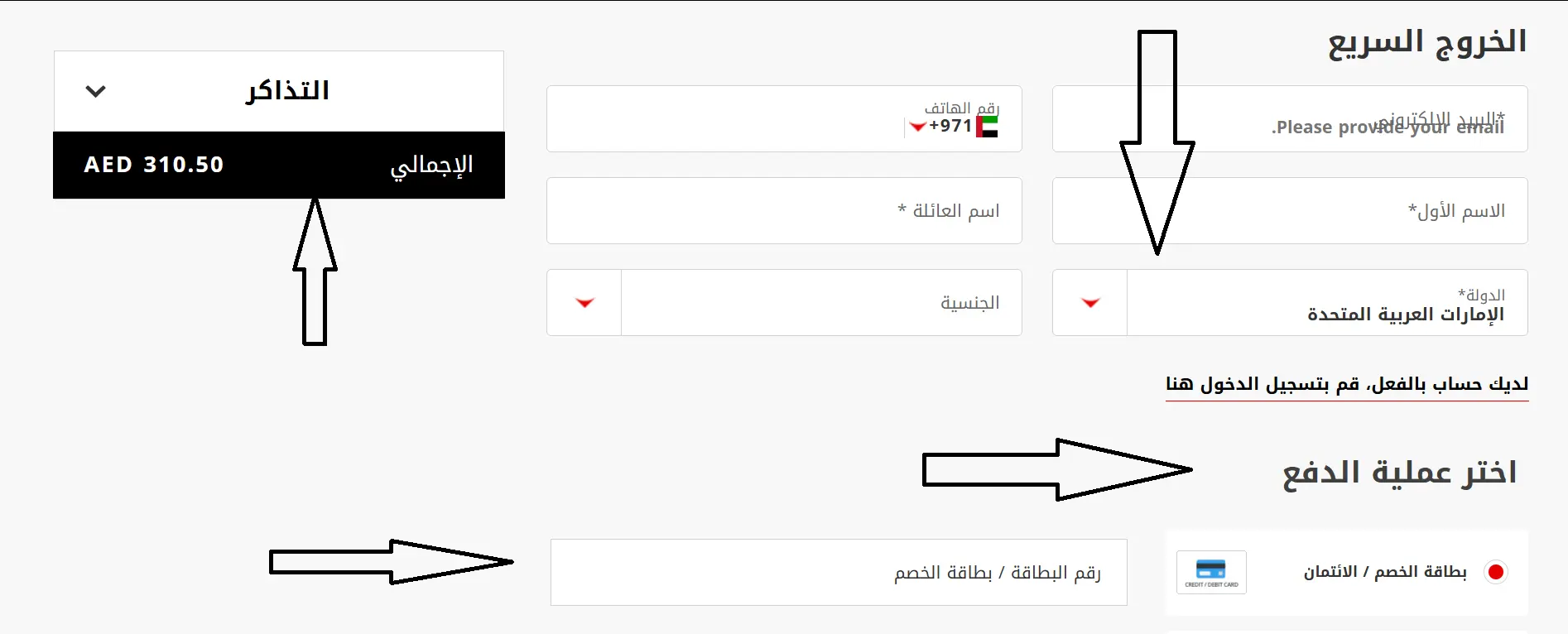 ثم اتبع التعليمات الخاصة بعملية الدفع وشراء التذاكر.