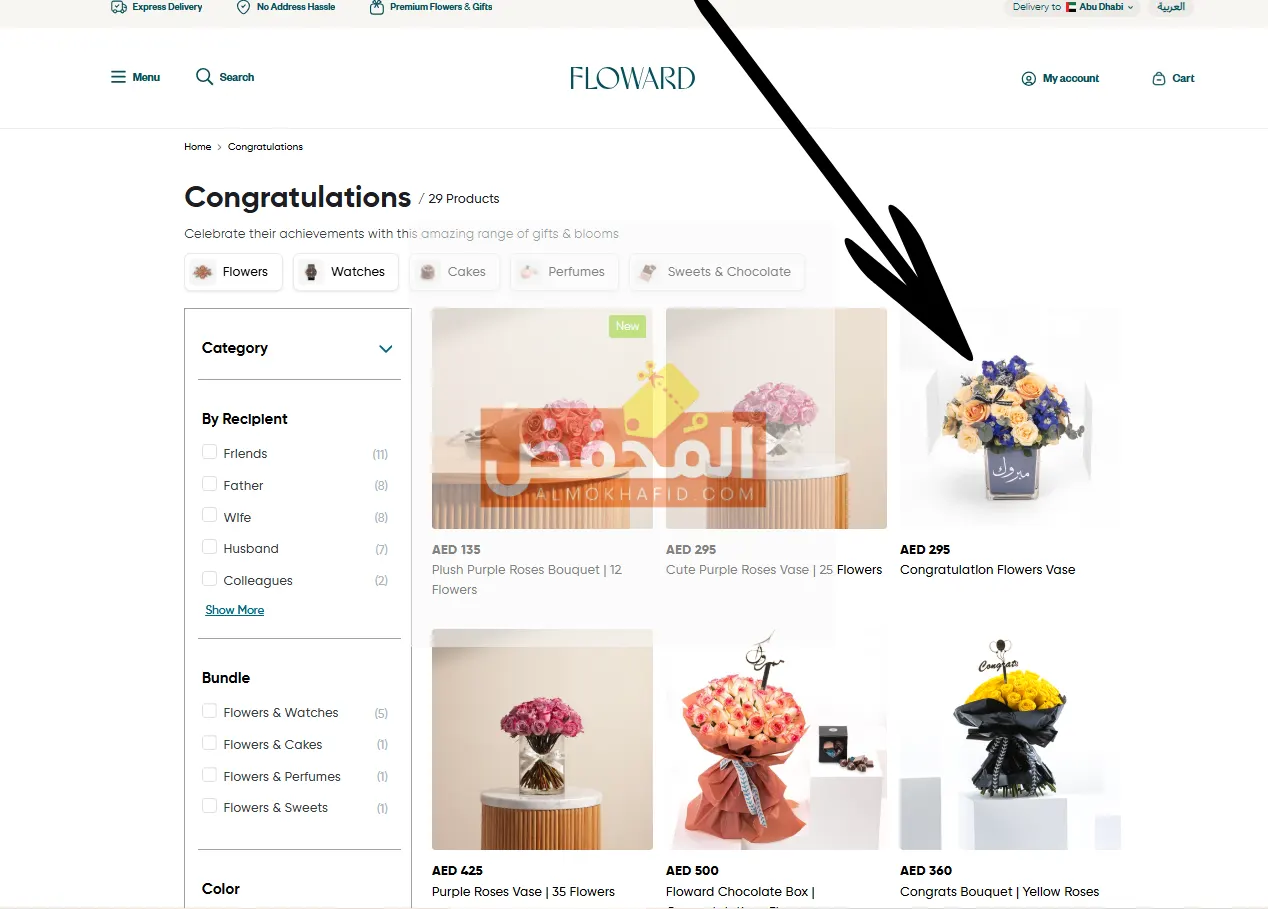 من الأقسام المتاحة اختر أي من الهدايا أو الباقات التي ترغب بها.