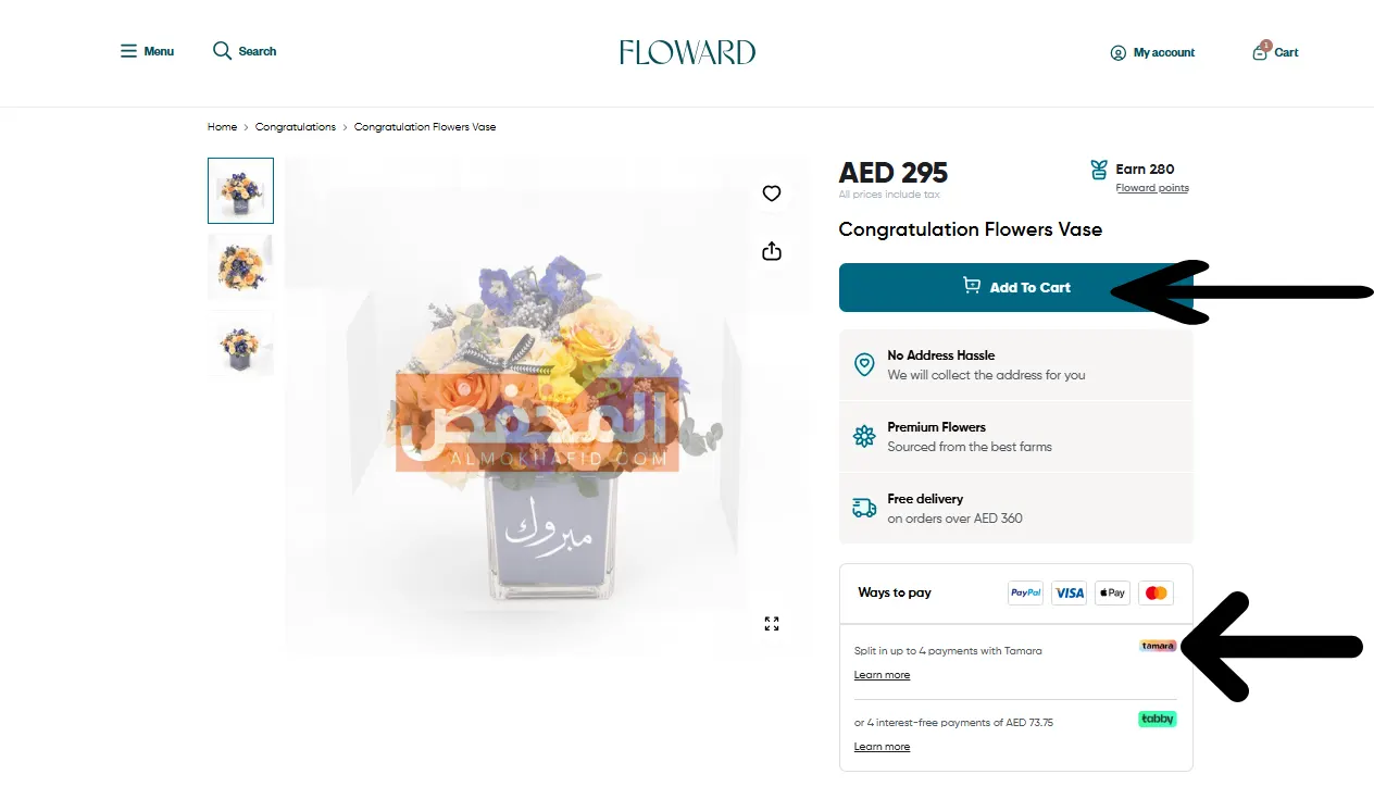 أضف الهدية التي ترغب بها إلى عربة التسوق بعد التحقق من نوعها والمعلومات الخاصة بها من الشحن وطرق الدفع وغيره.
