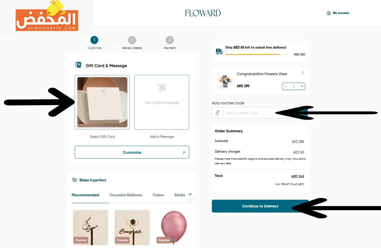 الصق كود خصم فلاورد الإمارات في الخانة المخصصة له، لتحصل على خصومات فعالة على العديد من الهدايا.