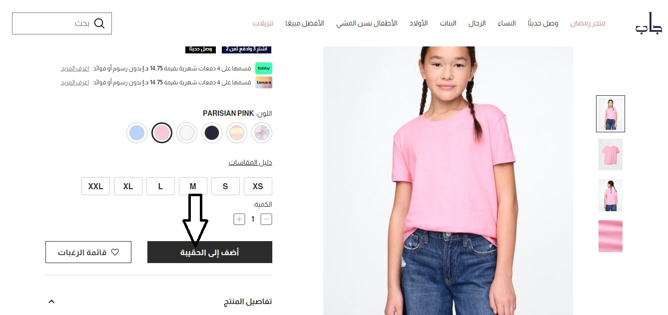- كما يمكن الدفع من خلال التقسيط عبر تابي وتمارا.