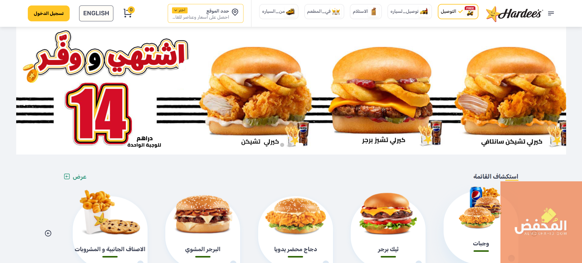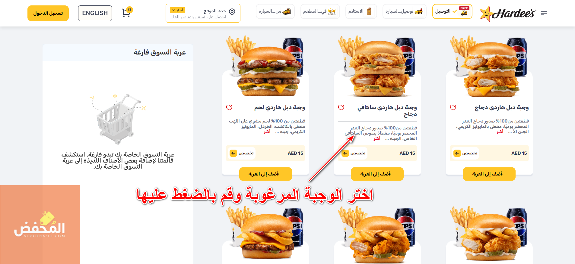 1- ادخل إلى الموقع الرسمي الخاص بهارديز الإمارات حتى تتمكن من استعراض كافة الوجبات المميزة والمعروضة على المتجر، والتي يمكنك الاختيار من بينها لاحقًا.