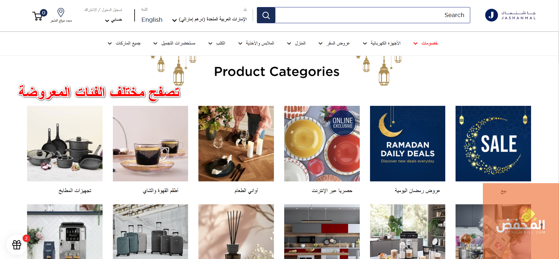 1- ادخل إلى الموقع الرسمي لمتجر جاشنمال الإمارات عن طريق الرابط المباشر للمتجر والمعروض أعلى هذه المقالة، حتى تتمكن من استعراض كافة الفئات والعروض المميزة التي يوفرها المتجر.