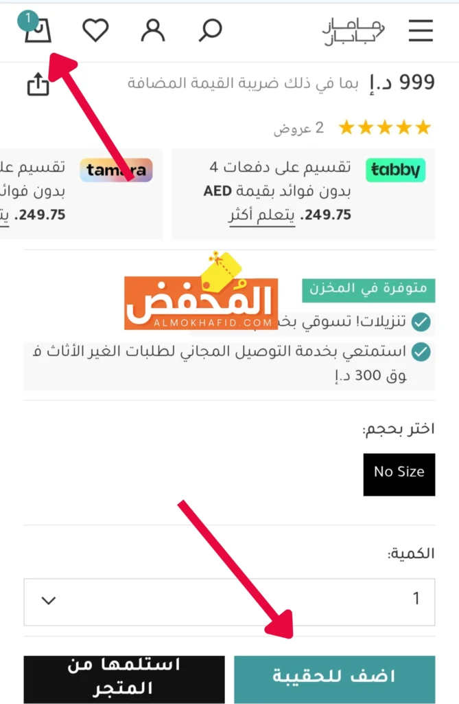 خدمة استلام المنتج من المتجر تتم في نفس اليوم مجانًاآخر موعد 6 مساءً.