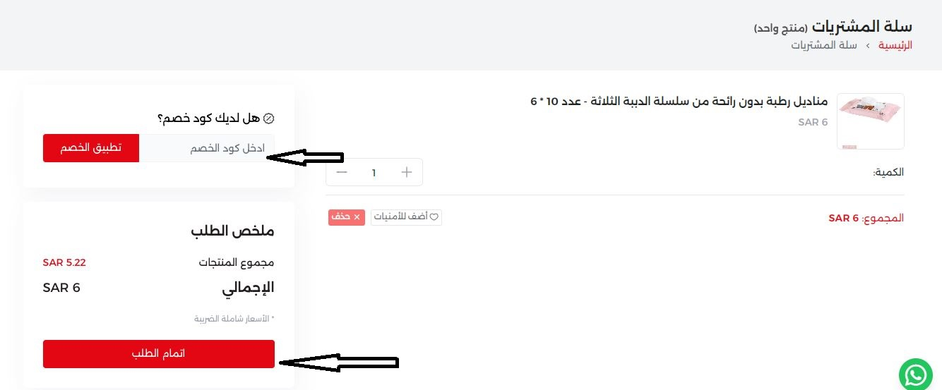 افتح السلة وانتقل إلى اختيار الشراء والدفع وأدخل كود الخصم في الخانة المخصصة له.