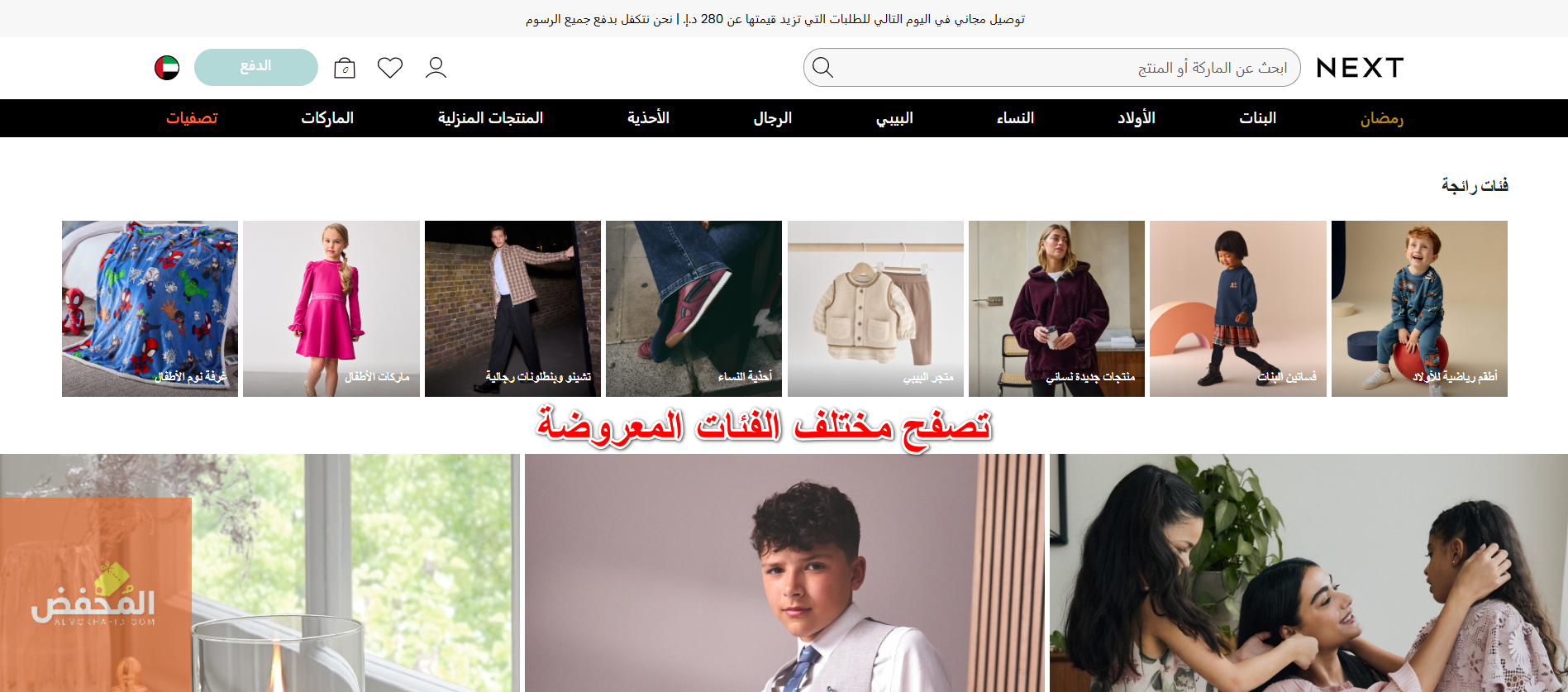 1- ادخل إلى الموقع الرسمي لمتجر نكست الإمارات، والذي يمكن من خلاله استعراض كافة المنتجات المعروضة، وأفضل الفئات التي يمكن الشراء من خلالها.