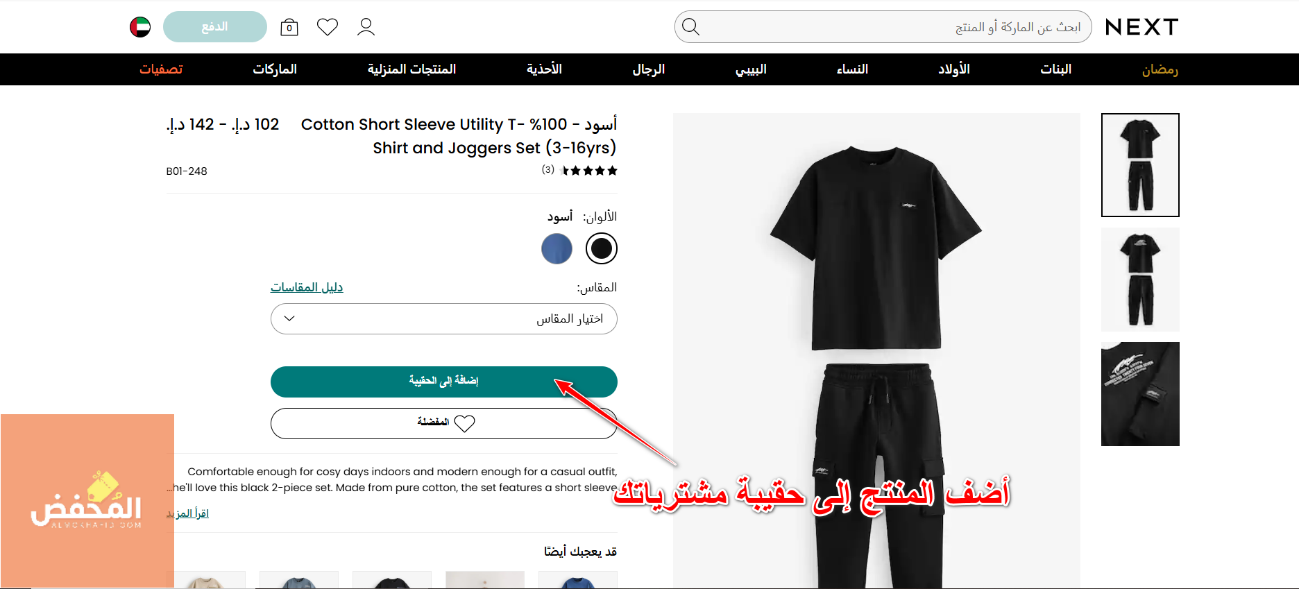 4- اضغط على الأيقونة المشار إليها بالسهم التالي حتى تتمكن من إضافة المنتج إلى حقيبة مشترياتك، وبالتالي إتمام طلب الشراء الخاص بك لاحقًا من خلال سلة المشتريات هذه.