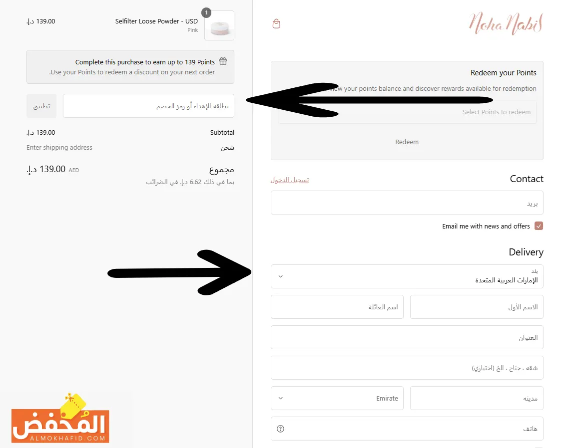 لا تنسى إضافة طريقة الدفع التي تتناسب معك لك، والتحقق من تطبيق كود خصم نهى نبيل بيوتي الإمارات لكي تتمكن من الحصول على التخفيض.