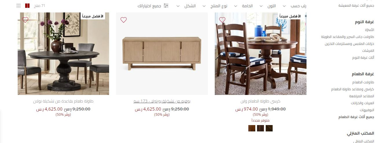 من الصفحة الرئيسية، سوف تجد العديد من الأقسام منها الشراشف والحمام والأثاث الخارجي والسجاد وغيرها.