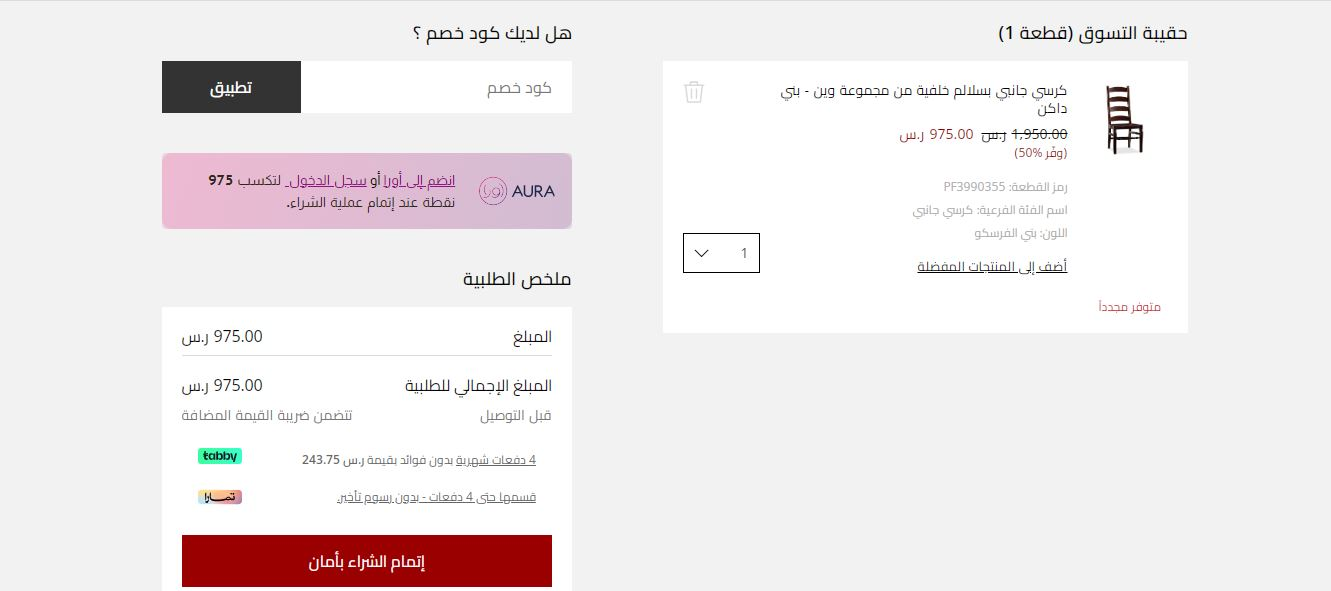 انتقل إلى إضافة المنتجات الحاصل عليها عبر سلة التسوق، وافتح السلة للتأكد من المنتج ومواصفاته.