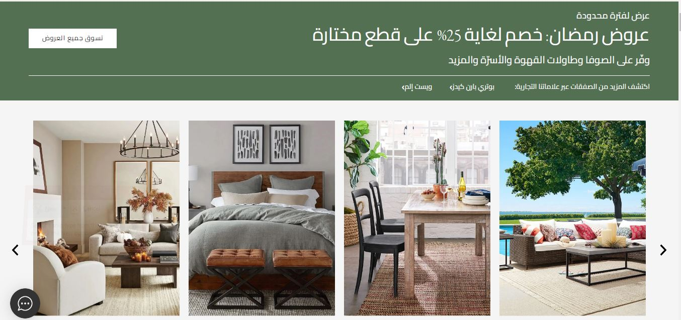 عروض خاصة بشهر رمضان المبارك القادمة تصل إلى 25% على بعض القطع المختارة منها الأرائك وطاولات القهوة والأسرة.