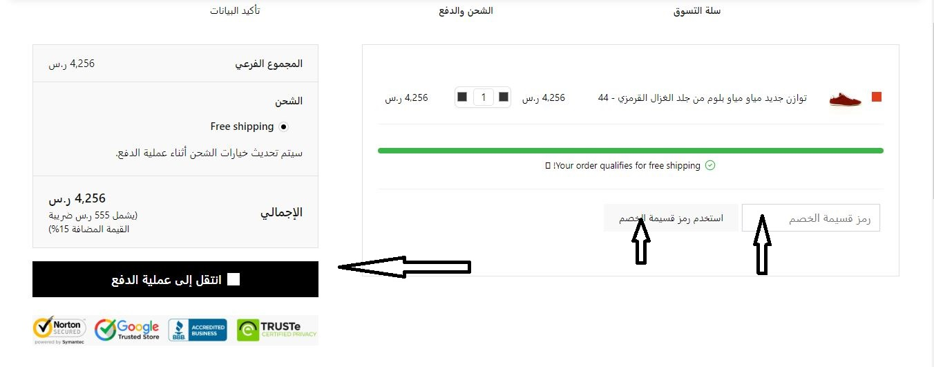 انتقل إلى صفحة الدفع وإدخال رمز القسيمة الخاصة بالشراء.
