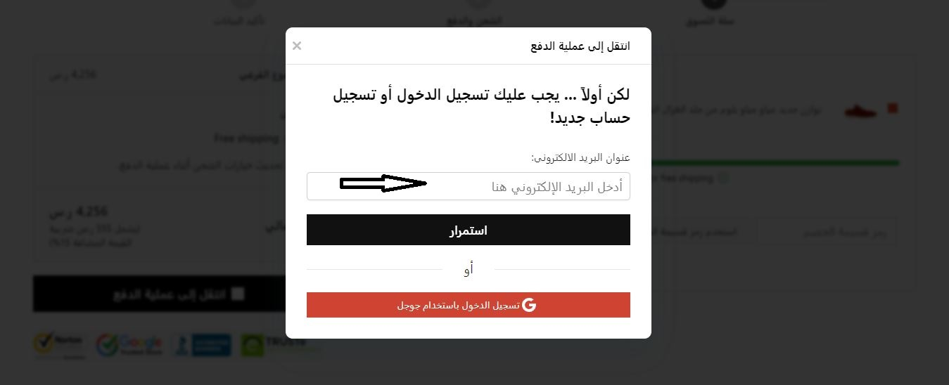 تسجيل الدخول عبر عنوان البريد الإلكتروني واستكمال الشراء.