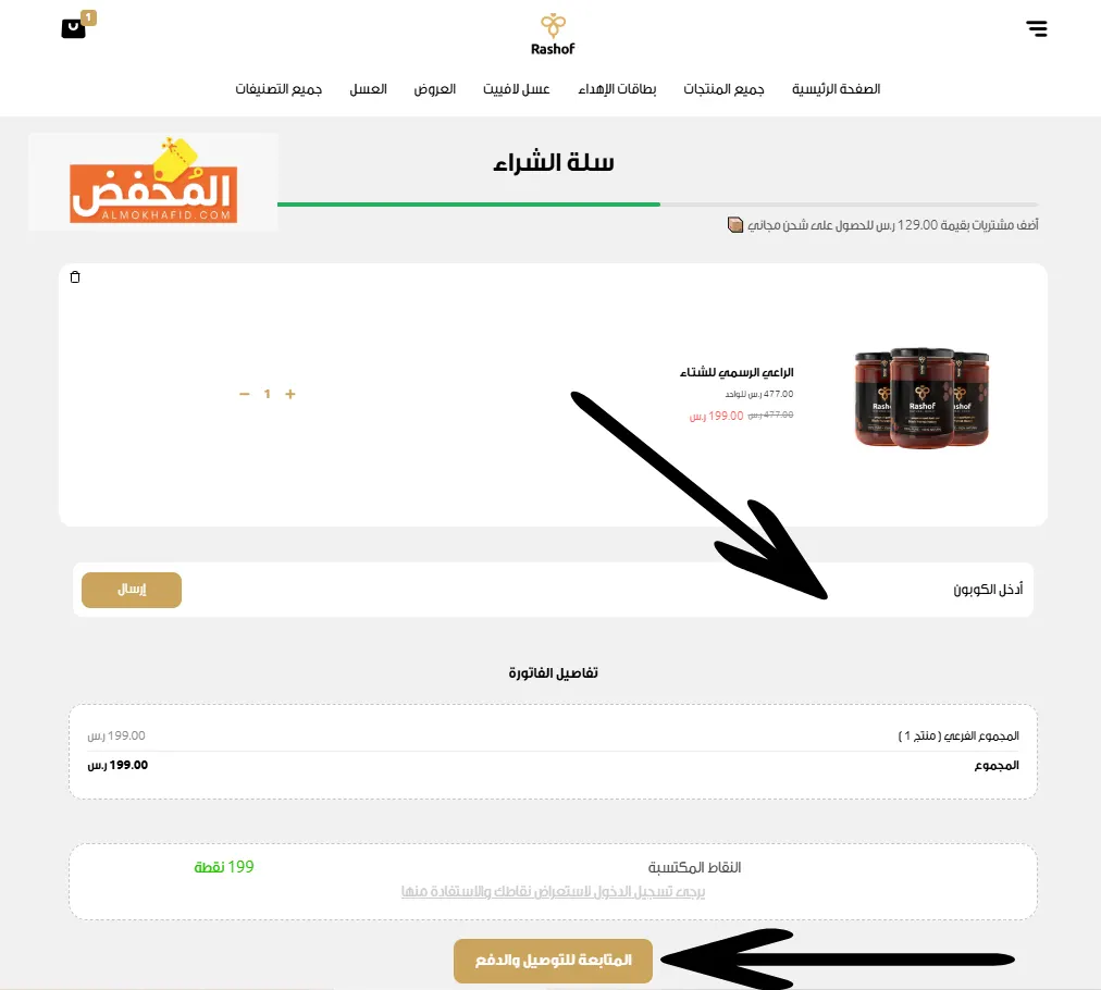 لا تحتاج إلى الكثير من الخطوات ولا تواجه أي من التعقيدات عند الشراء عبر موقع رشوف، حيث يضمن لك الموقع الحصول على العسل الطبيعي وغيره من المنتجات بسهولة وبأسعار تنافسية عند استخدام كوبون خصم رشوف الإمارات، وذلك عبر اتباع الخطوات التالية: