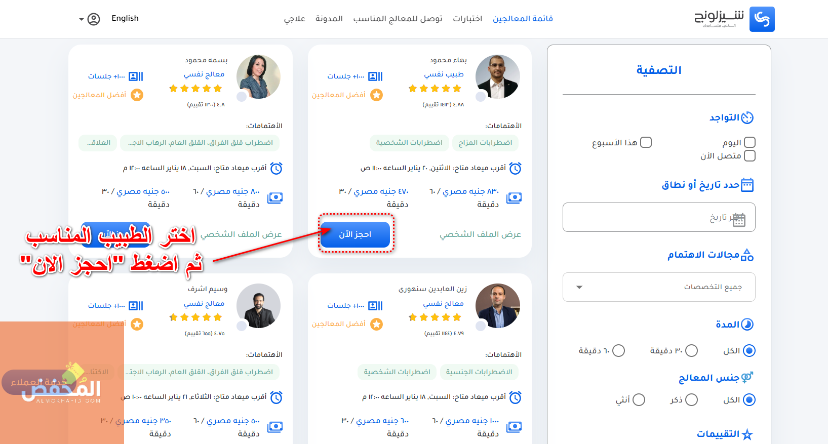 4- اختر الطبيب المرغوب، ثم اضغط على “احجز الآن” حتى تتمكن من اختيار المواعيد المناسبة لك، ورؤية مدى إتاحتها.