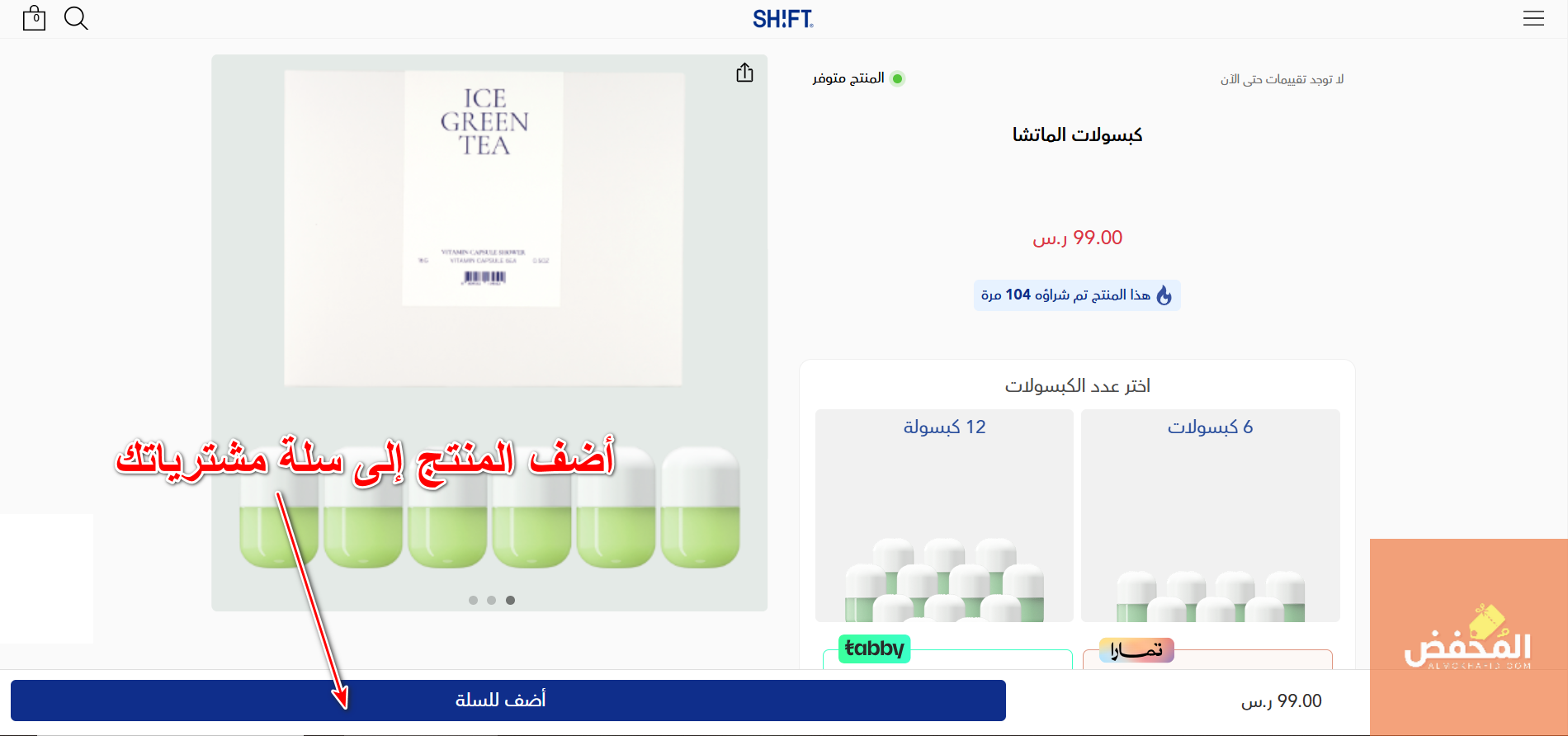 4- أضف المنتج إلى سلة المشتريات الخاصة بك عن طريق الضغط على الأيقونة المشار إليها بالسهم في الصورة التالية، وذلك حتى تتمكن من استعراض الطلب لاحقًا وإتمام عملية الشراء من خلال سلة مشترياتك.