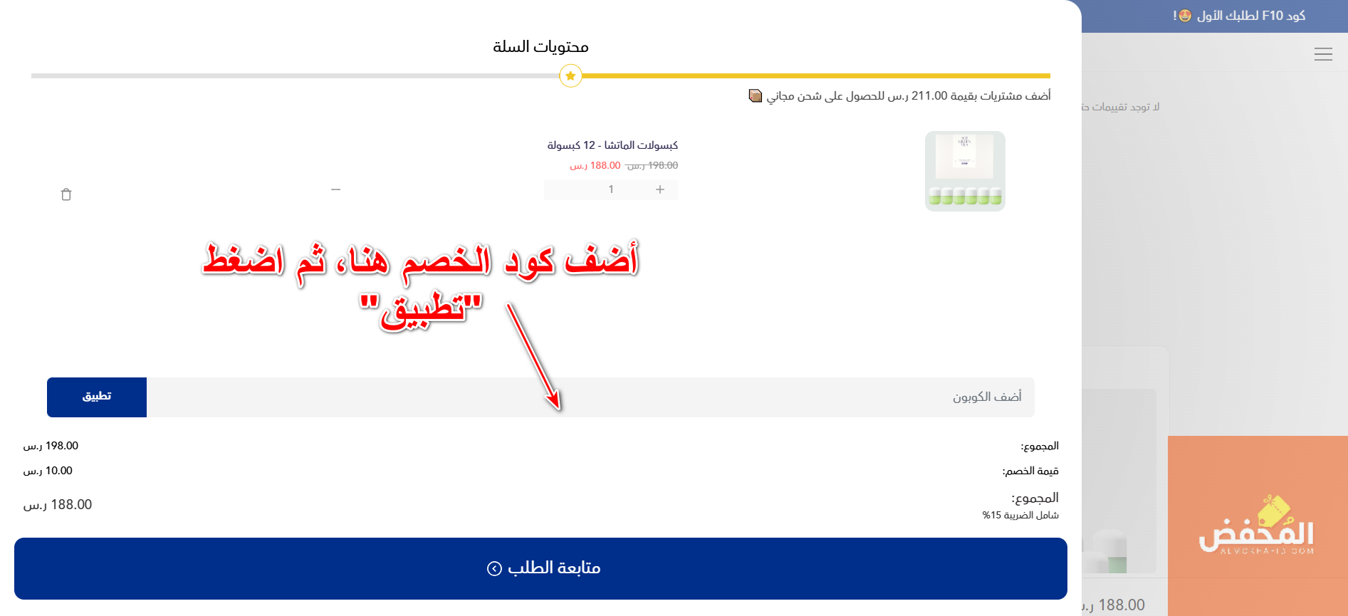 5- انسخ كود خصم SHIFT الإمارات، وقم بلصقه في الخانة المشار إليها في الصورة التالية، ثم اضغط “تطبيق” حتى تتمكن من الحصول على الخصم الذي يوفره الكود بشكل فوري.