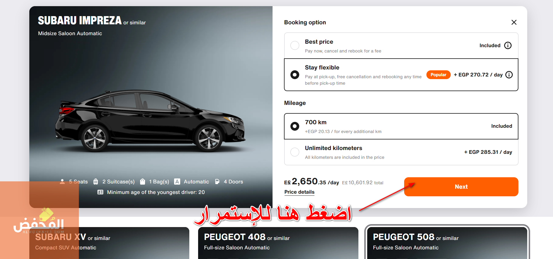 5- اختر خيارات الحجز المفضلة، ثم اضغط على “التالي” حتى تتمكن من الوصول إلى صفحة الدفع، وبالتالي إتمام عملية الحجز بكل سهولة.