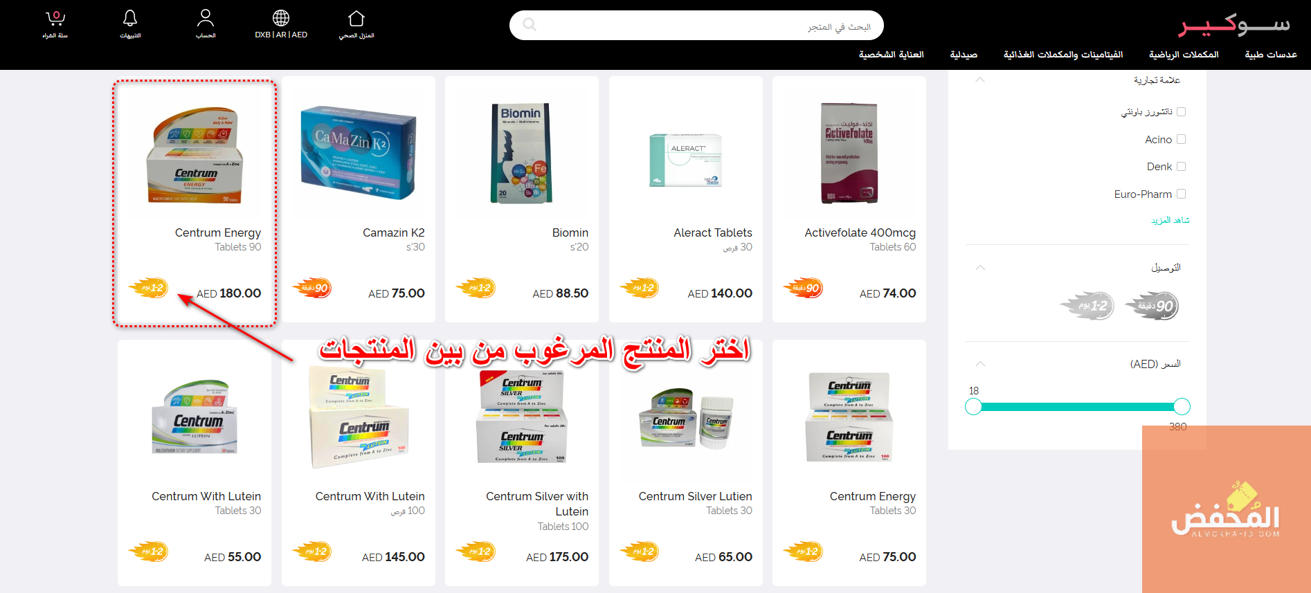 3- اختر المنتج المرغوب من بين المنتجات المعروضة، ثم قم بالضغط عليه حتى تتمكن من الوصول إلى الصفحة الخاصة بالمنتج، واستعراض كافة خصائصة ومعرفة مدى ملائمته لك أو لحالتك الصحية.