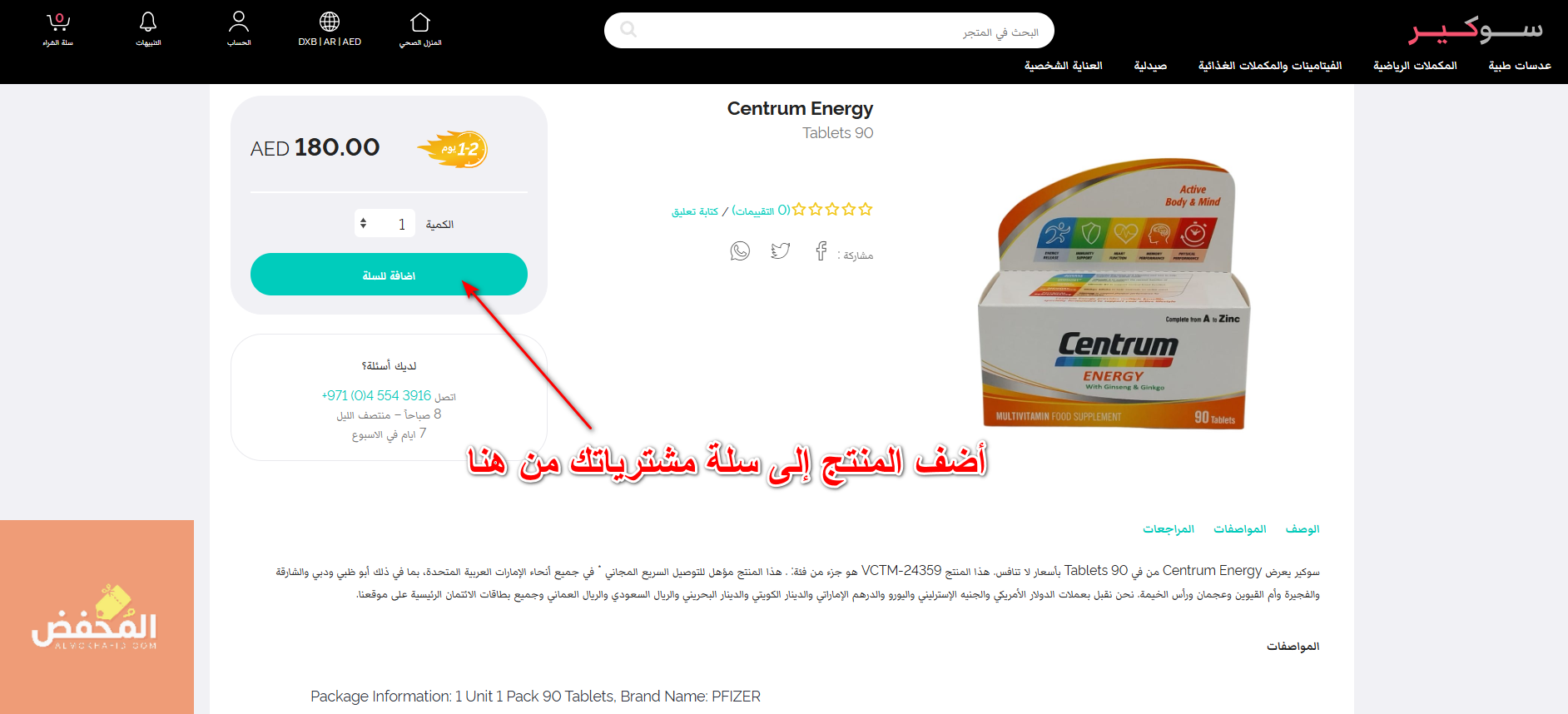 4- أضف المنتج المختار إلى سلة المشتريات الخاصة بك عن طريق الضغط على الأيقونة المشار إليها بالسهم في الصورة التالية، حتى تتمكن من إتمام الطلب لاحقًا والحصول عليه في أقرب وقت ممكن.