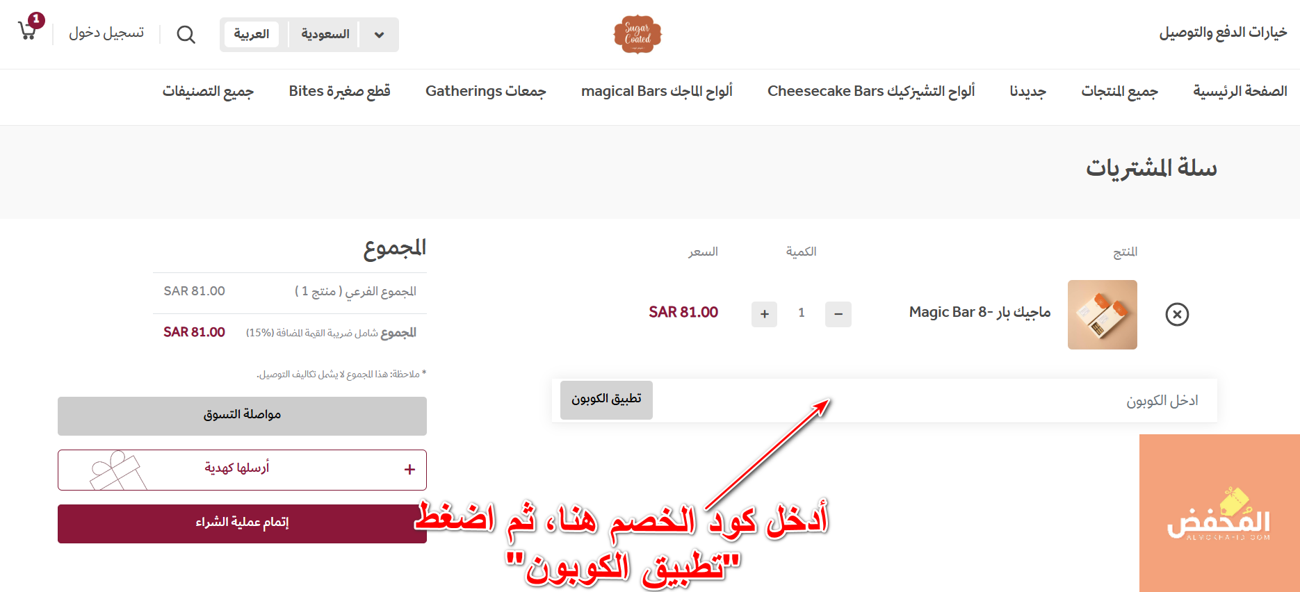 5- انسخ كود خصم شوقر كوتد الإمارات، ثم قم بلصقه في الخانة المشار إليها بالسهم التالي، ثم اضغط “تطبيق الكوبون” حتى تتمكن من الحصول على الخصم المميز الذي يوفره كود الخصم بكل سهولة وبشكل فوري.