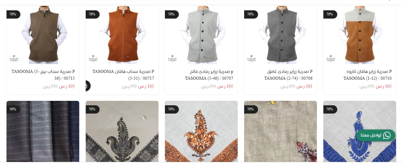 يوفر المتجر نسبة التخفيض العالية التي تصل إلى 70% على مجموعة من الصدريات بتصميمات مختلفة وألوان متعددة وأشكال متميزة، منها بأزرار ومنها بالسحاب، بالإضافة إلى أنواع مختلفة من الشال الشتوي والقماش الشتوي، وبعض أنواع الأحذية، السراويل الداخلية، مناديل التنظيف، السباحة وغيرها من المنتجات المهمة.