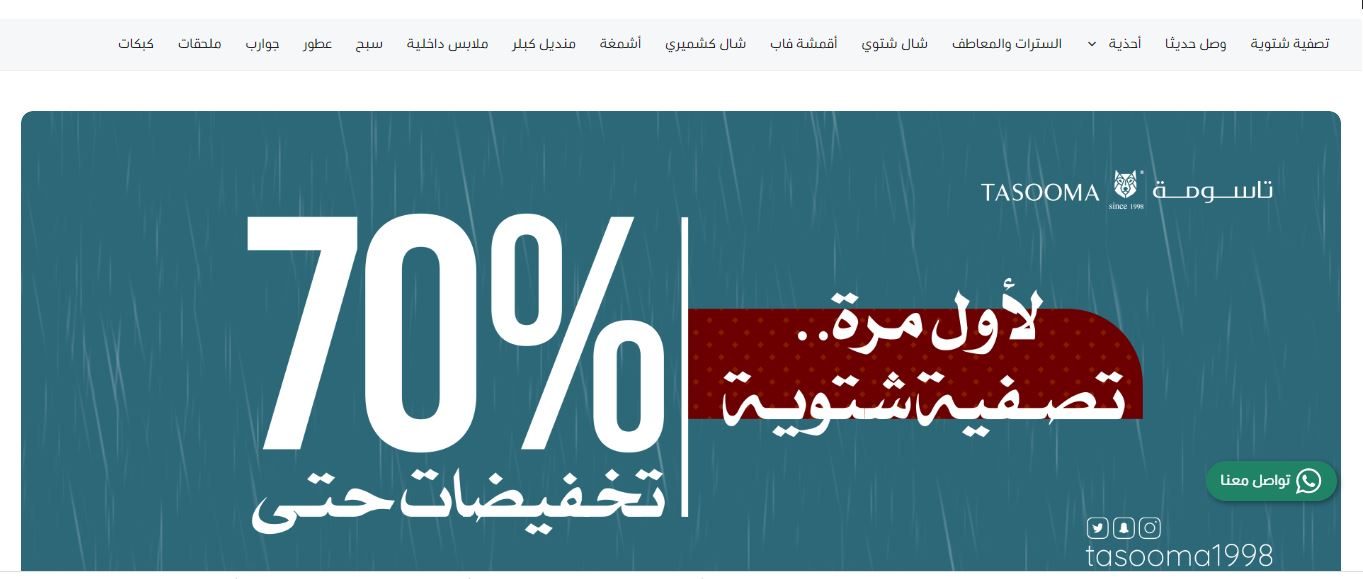 يمكن استغلال الفرصة من خلال تصفيات الشتاء التي تصل إلى 70% واستخدام كود خصم تاسومة الإمارات على العديد من المنتجات التي يوفرها المتجر، والتي يمكن الحصول عليها مع الشحن المجاني والسريع إلى كافة مناطق الإمارات.