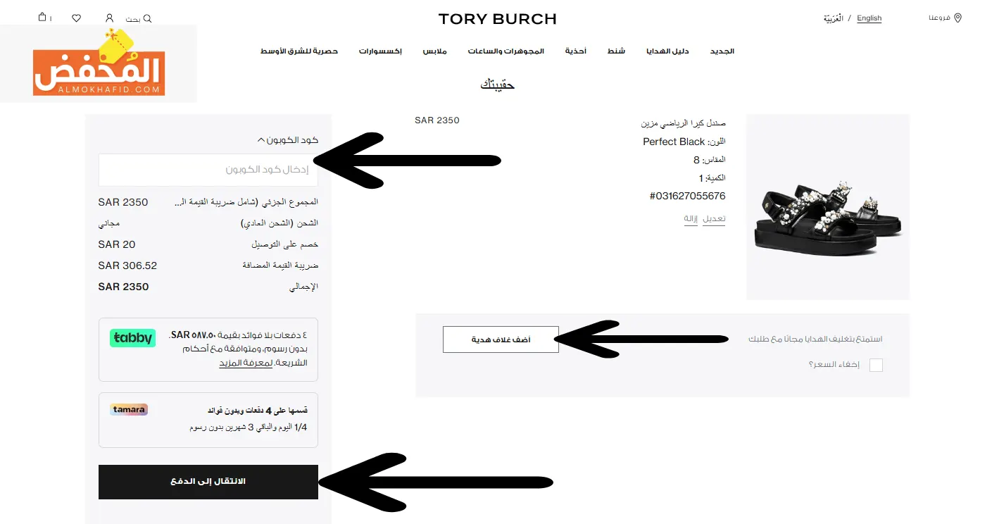 عزيزي العميل لا تنسى تفعيل كود خصم Tory Burch الحصري والفعال المتوفر في موقعنا من قبل إتمام الدفع لكي تحصل على أفضل المنتجات بأقل سعر.