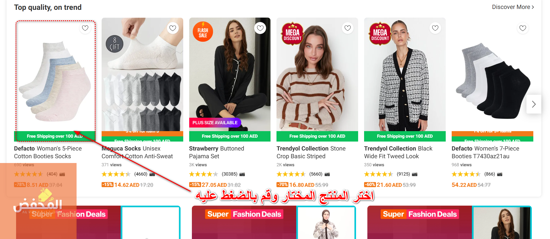 3- اختر المنتج المرغوب من بين المنتجات المعروضة على الموقع، ثم قم بالضغط عليه حتى تتمكن من الدخول إلى صفحة المنتج واستعراض كافة تفاصيله.