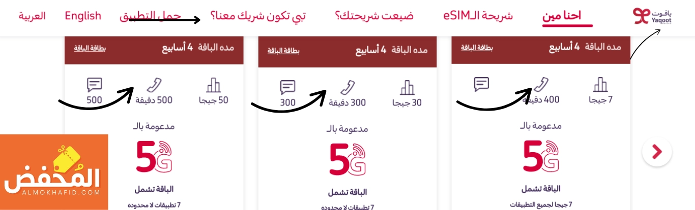 أستفيد الآن من عروض ياقوت على باقات البيانات اللامحدودة من داخل تطبيق أو موقع ياقوت الرائع حاليًا وتحصل على جميع خدمات الاتصالات والباقات الاضافية بخصومات من 30% حتي 50% عند إتمام عملية الشراء.