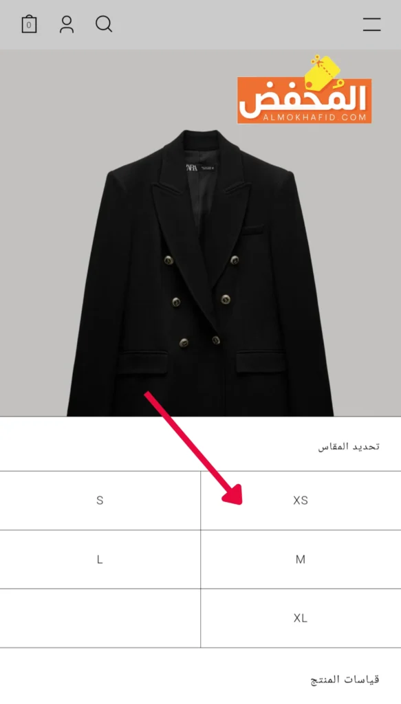 2. حدد المقاس المناسب بداية من xs وحتى XXL.