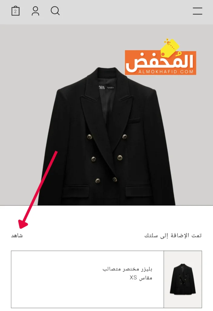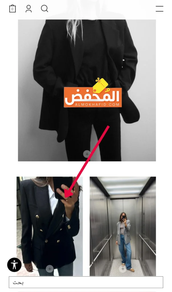 1.انتقل إلى موقع زارا الإمارات على الإنترنت، تصفح الأقسام وعندما تقرر الاختيار اضغط على الموديل المراد طلبه.